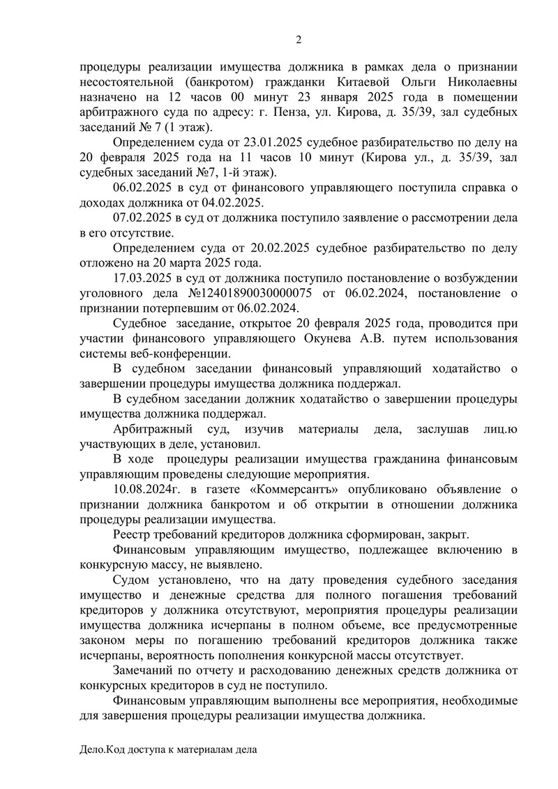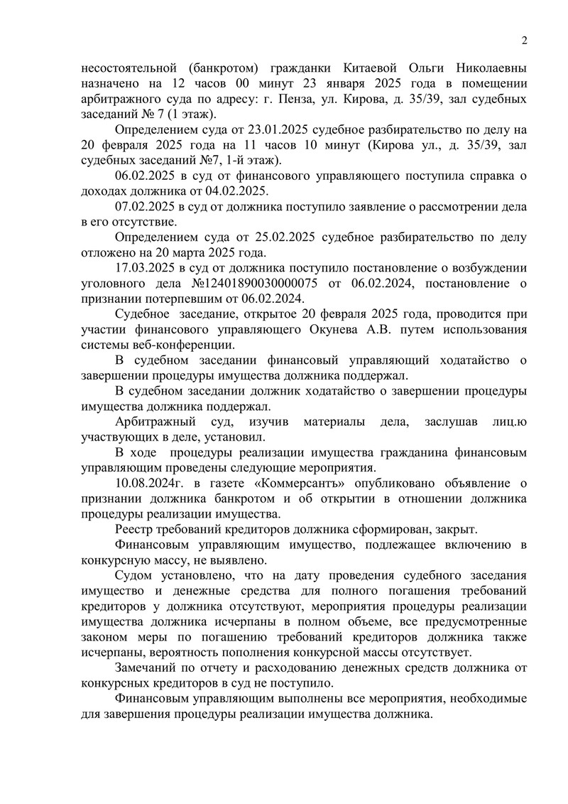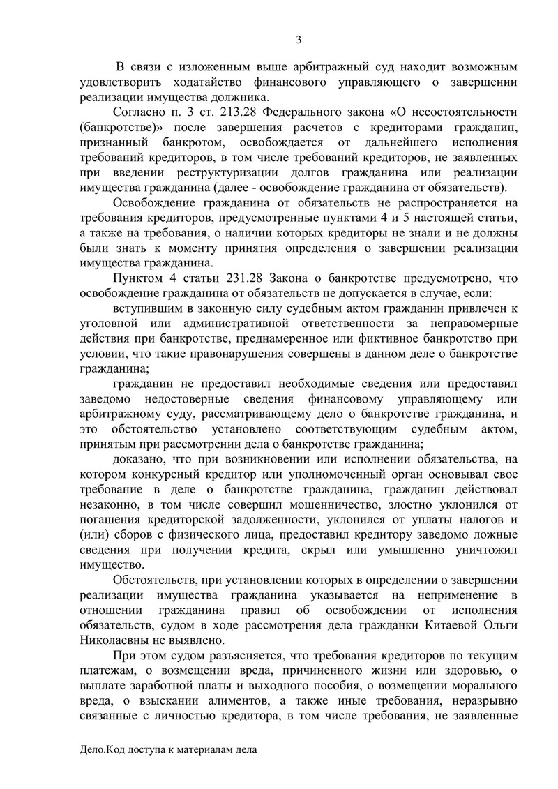 В процессе рассмотрения дела также были представлены документы, свидетельствующие о возбуждении уголовного дела с участием должника в другом производстве. Однако в рамках конкретного дела о банкротстве оснований для отказа в освобождении от долгов судом установлено не было.