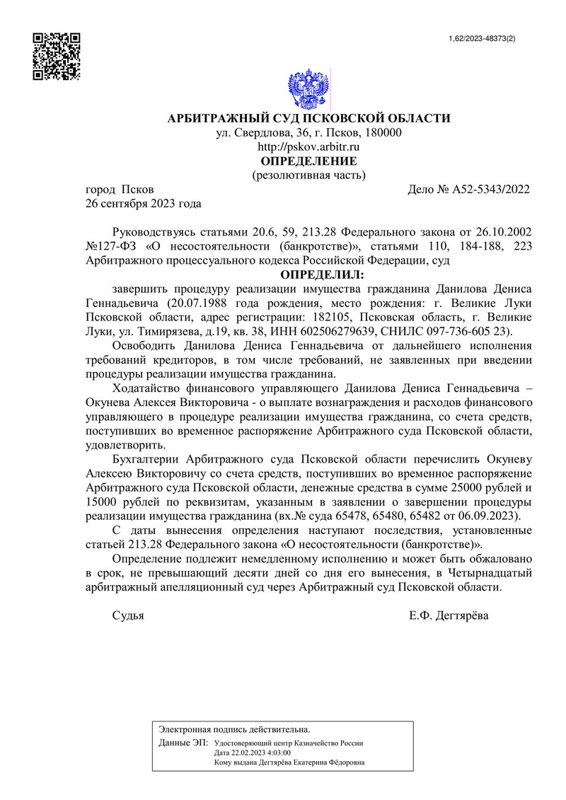 На этой неделе компания "ДОЛГАМ.НЕТ" одержала очередную победу в Арбитражном суде Псковской области! Решение по делу № А52-5343/2022, вынесенное 26 сентября 2023 года, стало поворотным моментом для нашего клиента.