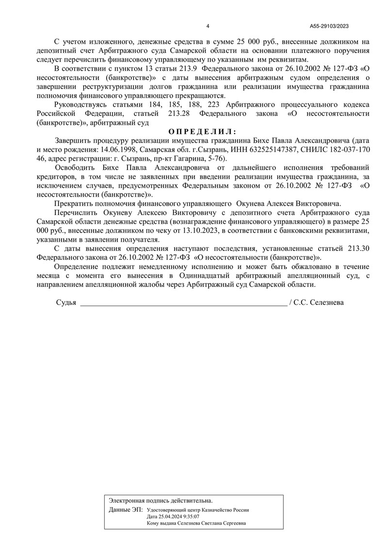 Каждое заседание арбитражного суда — это победа на пути к финансовой свободе, и определение суда по делу №А55-29103/2023 еще раз доказывает эффективность и профессионализм команды "ДОЛГАМ.НЕТ". Мы всегда стоим на защите интересов наших клиентов и продолжаем ежедневно помогать людям избавиться от долгов, обеспечивая им новое финансовое будущее.