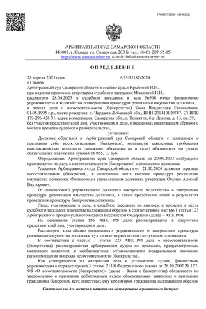 - Дата вынесения определения о завершении процедуры: 28 апреля 2025 года