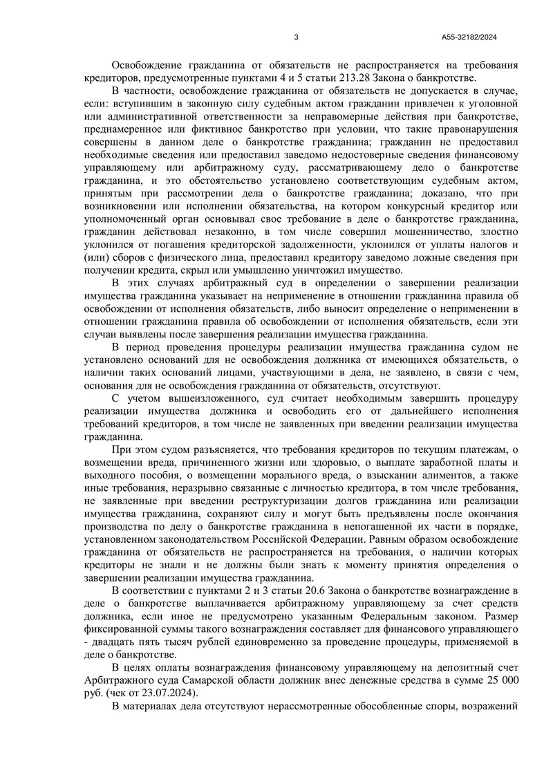 - Вывод суда: должник полностью освобожден от исполнения обязательств перед кредиторами.