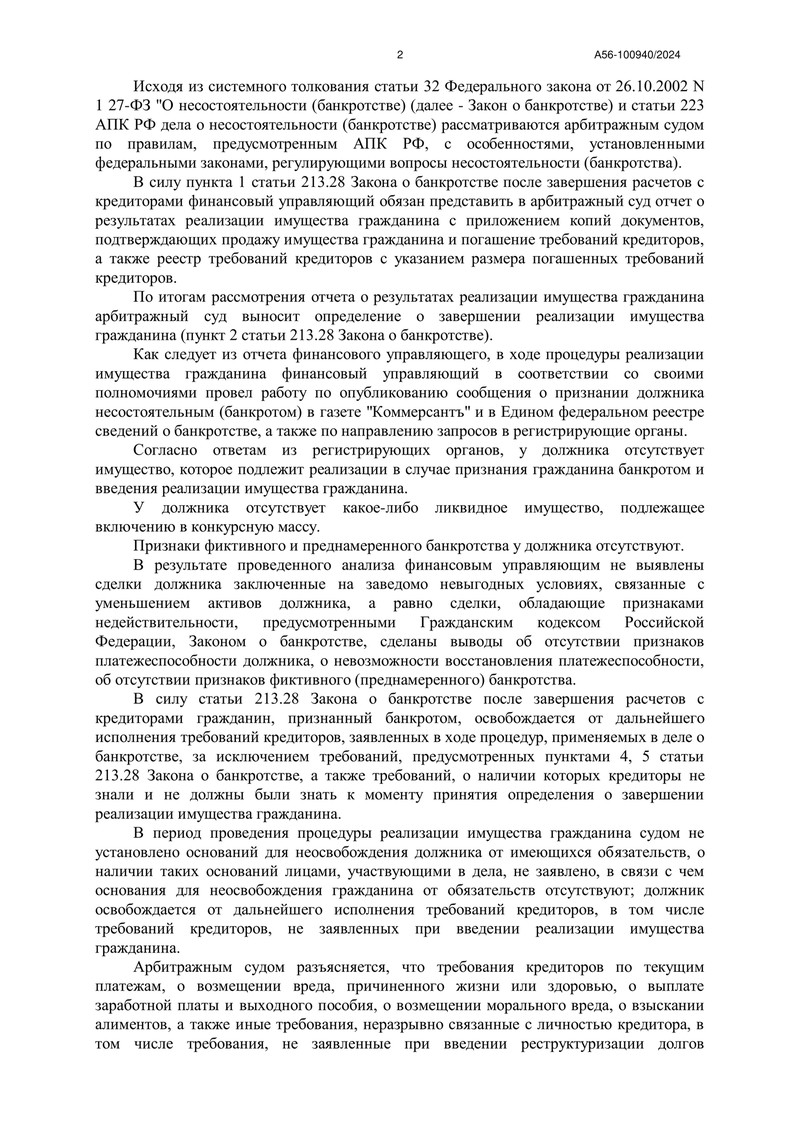 - Оснований для отказа в освобождении от обязательств выявлено не было.