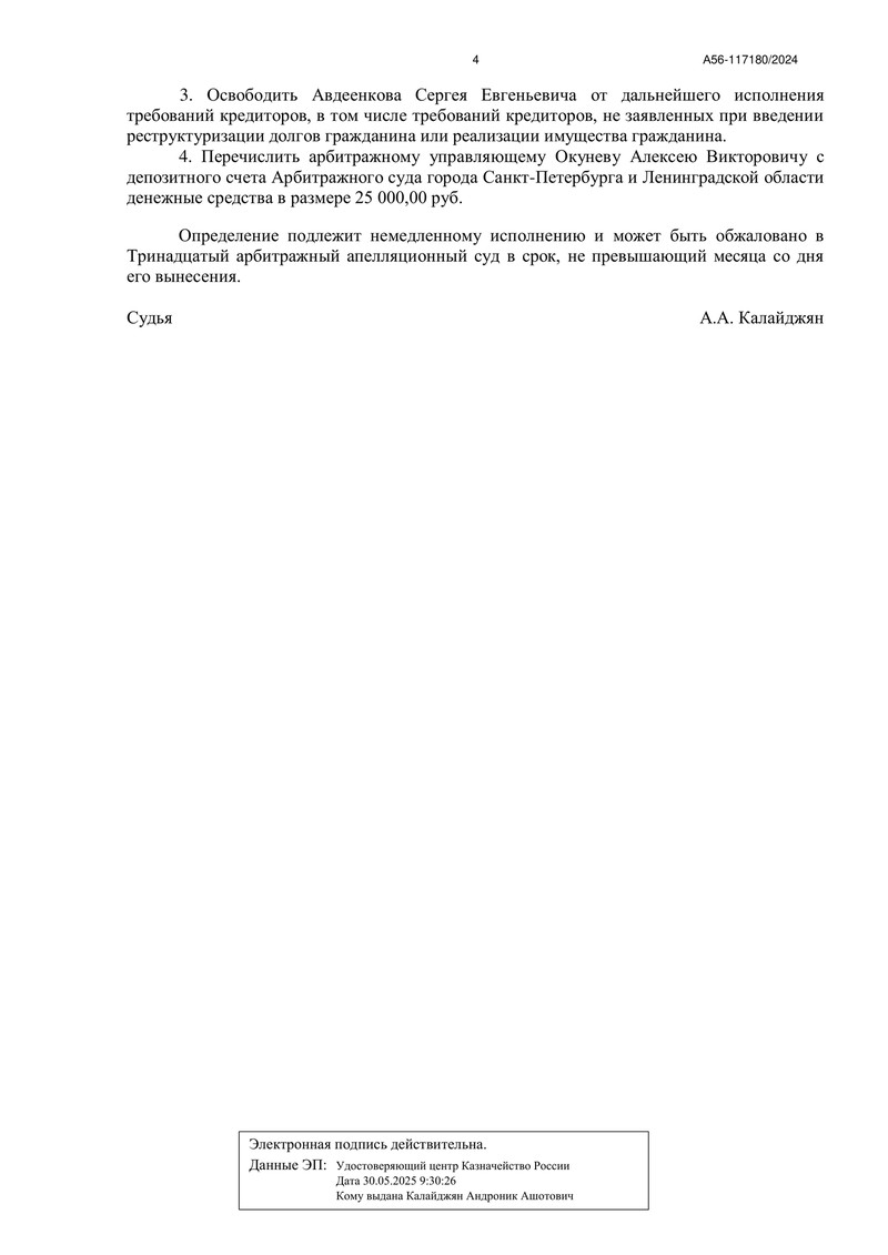 6. Полное освобождение от долгов. После завершения расчетов суд определил завершить процедуру реализации имущества и освободить нашего клиента от долгов по заявленным и даже не заявленным кредиторами обязательствам.