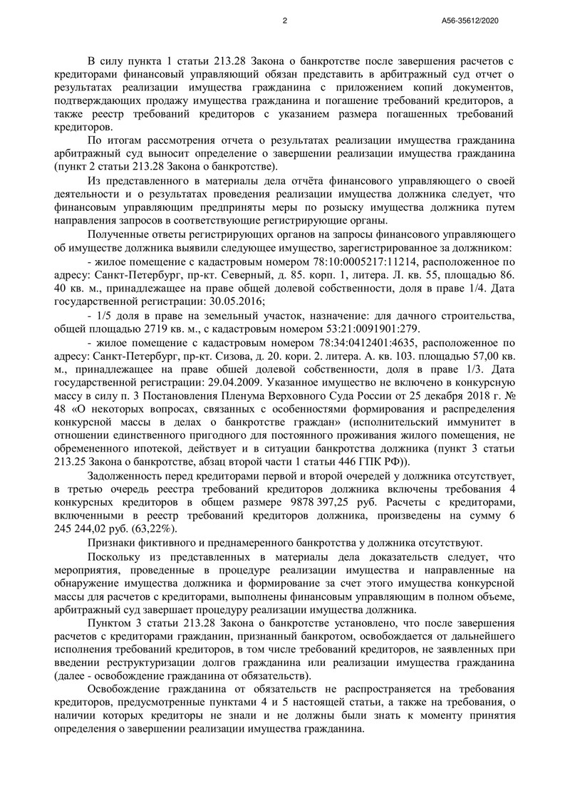Еще один клиент компании "ДОЛГАМ.НЕТ" успешно прошел процедуру банкротства, освободившись от долговых обязательств. Арбитражный суд города Санкт-Петербурга и Ленинградской области рассмотрел дело №А56-35612/2020 по банкротству физического лица.