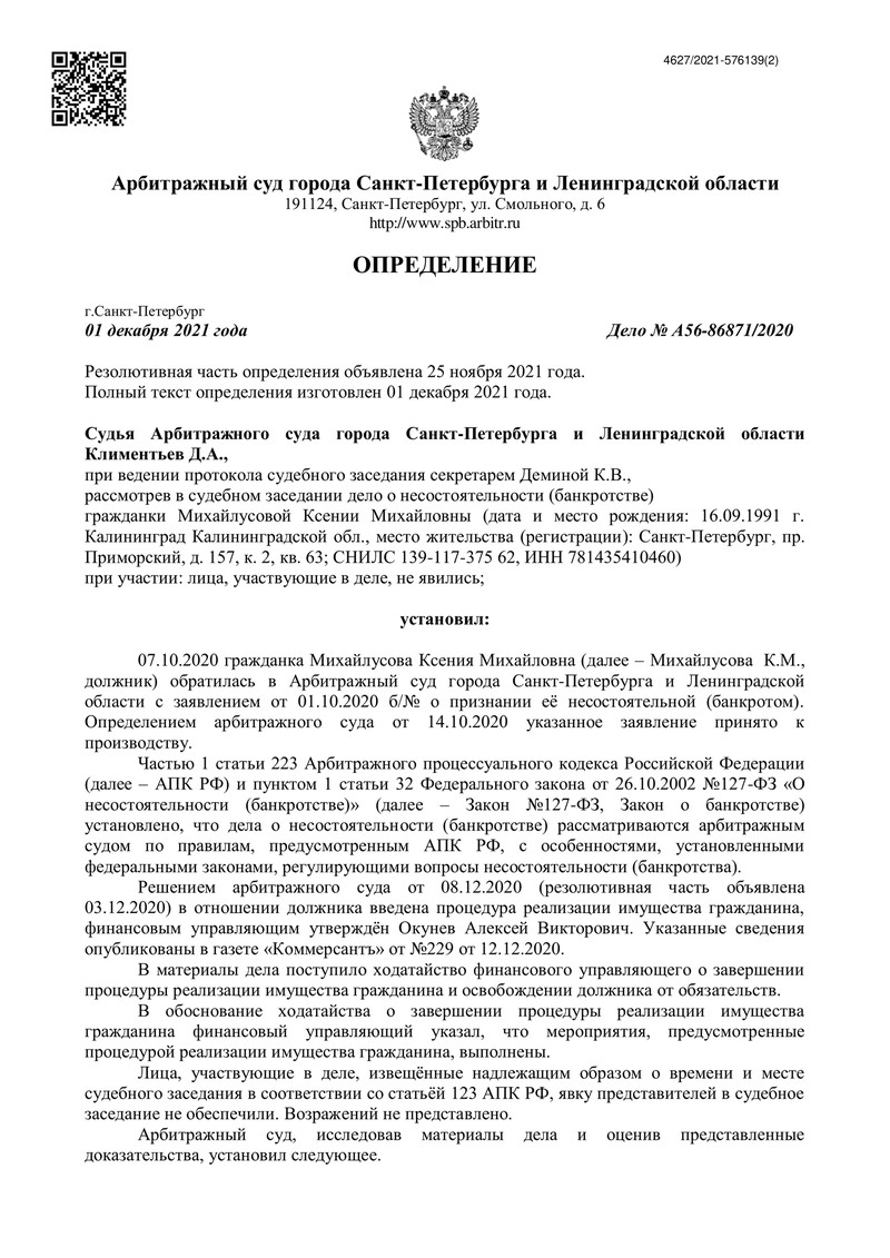 Еще один клиент компании "ДОЛГАМ.НЕТ" освободился от долгов благодаря успешному завершению дела о банкротстве в Арбитражном суде города Санкт-Петербурга и Ленинградской области. Это пример того, как наша компания помогает людям восстановить финансовую стабильность и начать жизнь с чистого листа.
