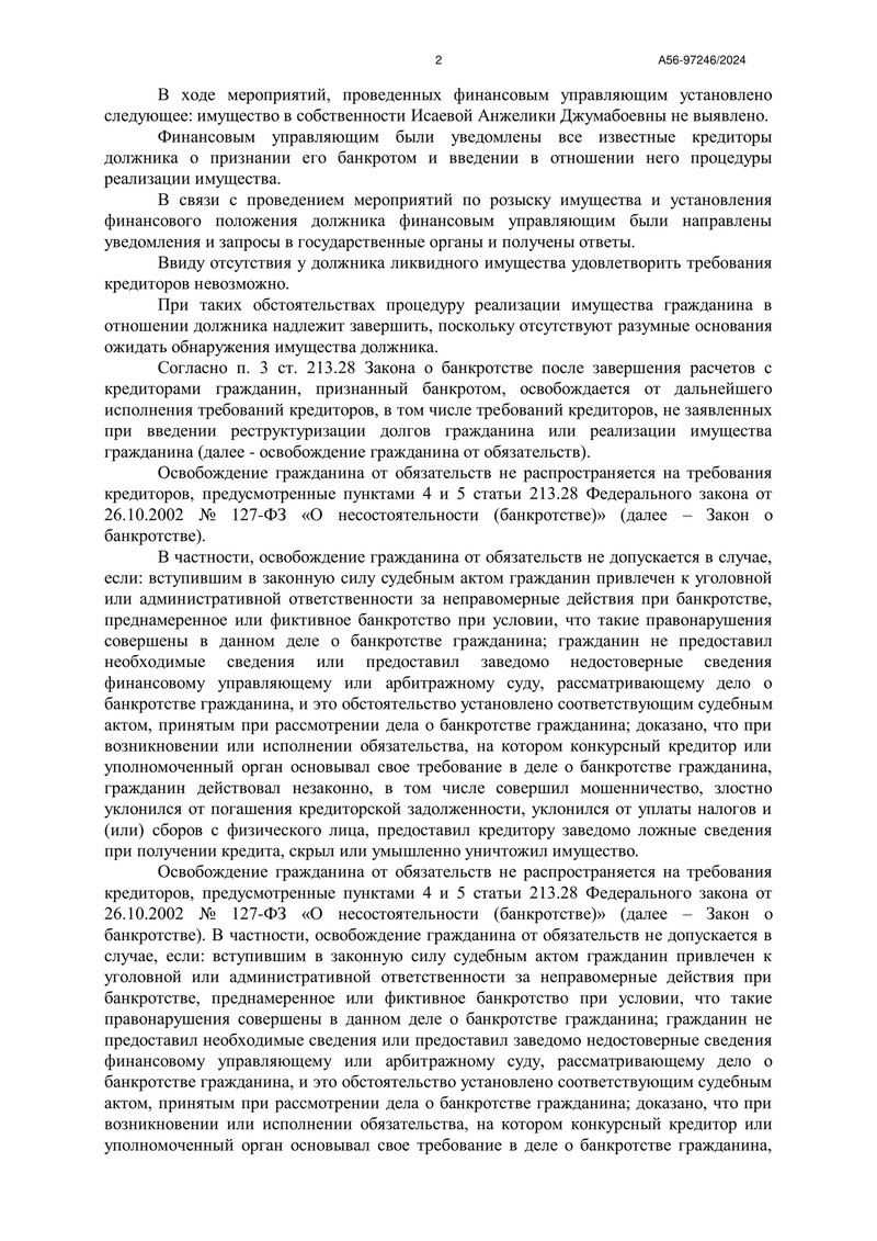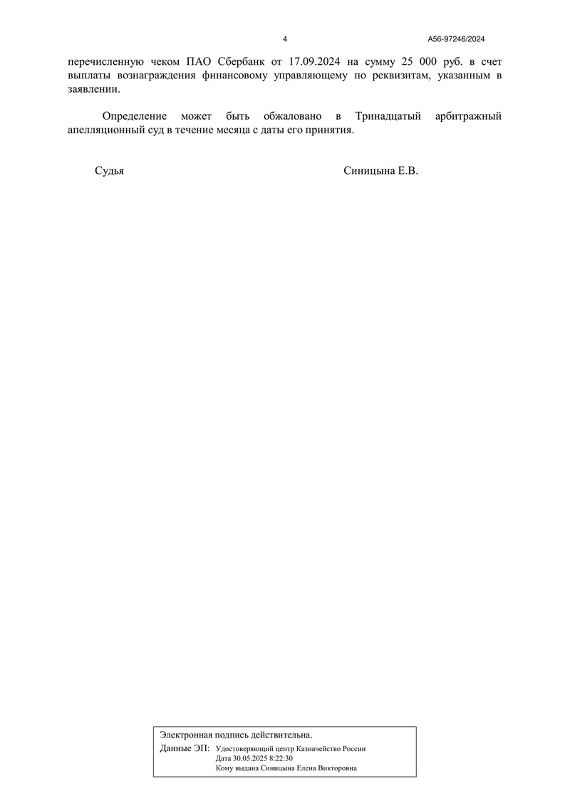 - Финансовый управляющий представил в суд ходатайство о завершении процедуры и отчет о проделанной работе, включая ответы госорганов на его запросы.