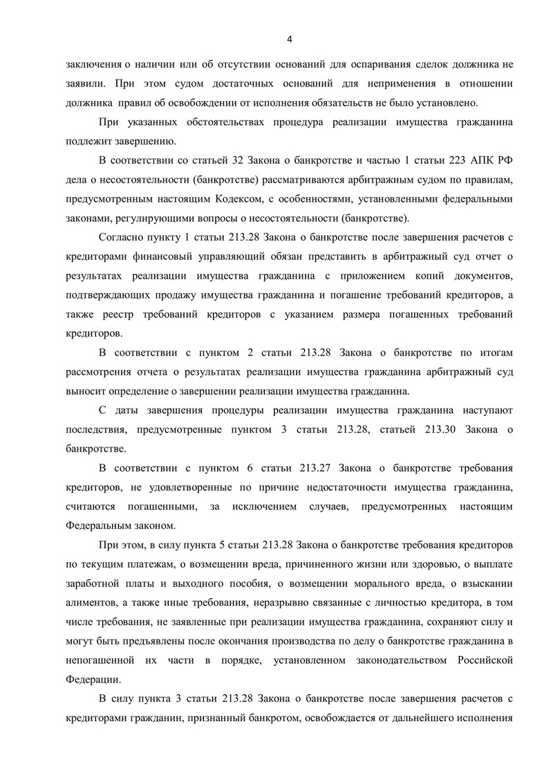 - Судебным определением процедура реализации имущества завершена, а наш клиент освобождён от исполнения всех требований кредиторов, как заявленных, так и не заявленных в рамках дела.