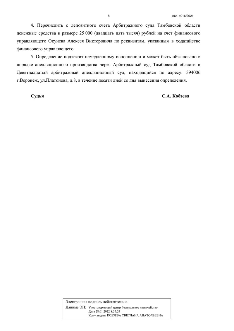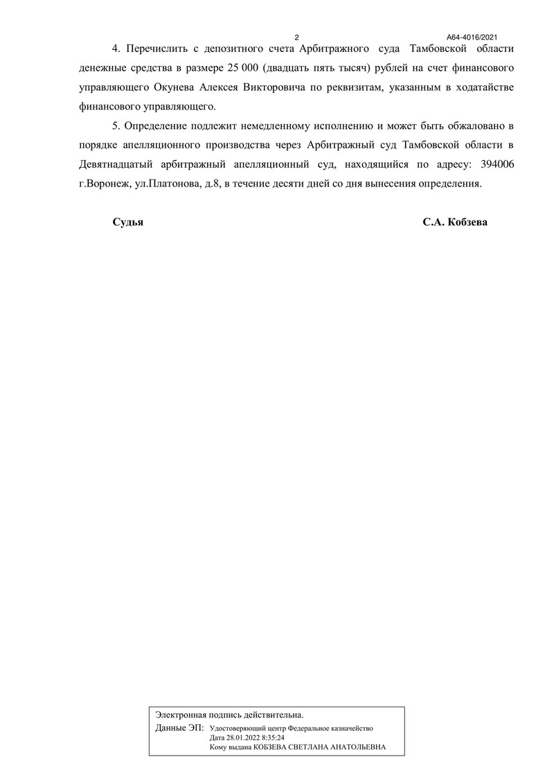 С радостью сообщаем, что компания "ДОЛГАМ.НЕТ" помогла еще одному клиенту освободиться от долговых обязательств! 3 ноября 2022 года Арбитражный суд Тамбовской области вынес определение о завершении процедуры реализации имущества.