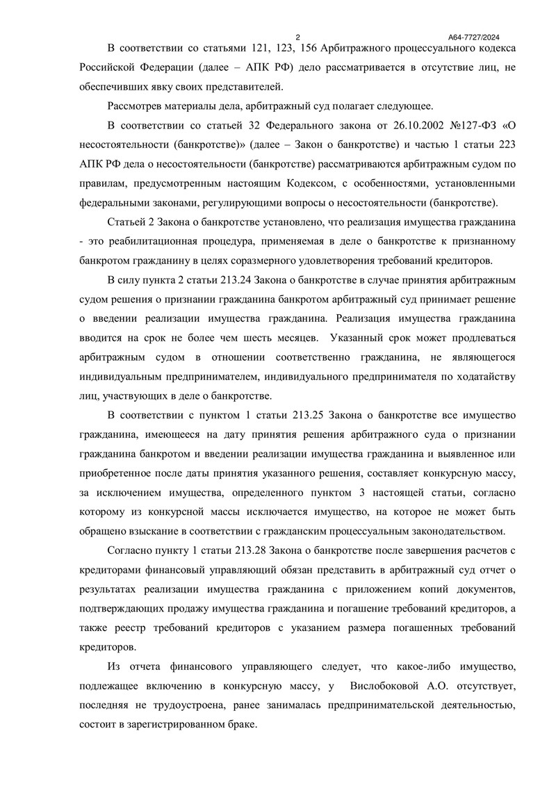 - Финансовый управляющий в ходе анализа выяснил, что у нашего клиента отсутствует какое-либо имущество, которое можно было бы реализовать в пользу кредиторов, а сам клиент не трудоустроен.