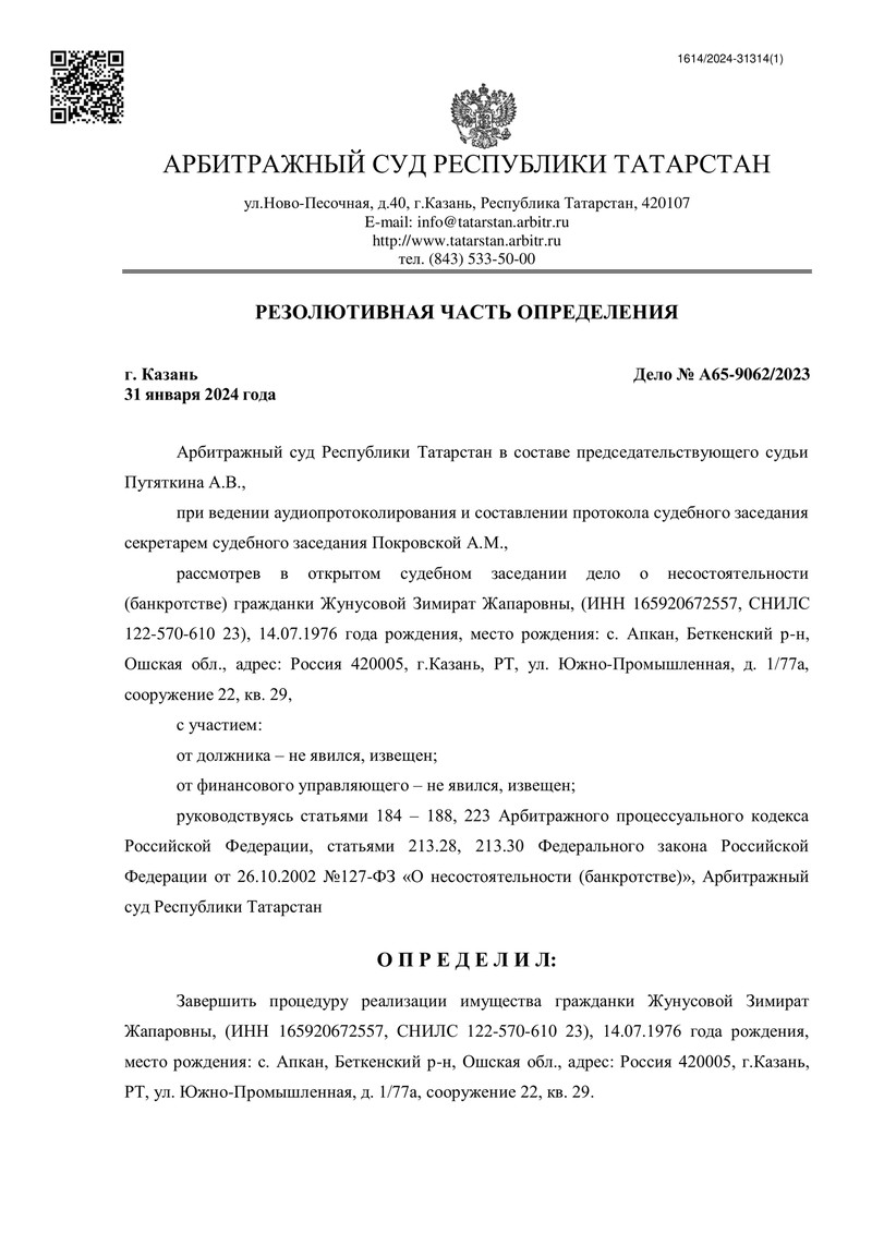 В очередной раз нашим юристам удалось помочь клиенту избавиться от тяжелого финансового бремени. На этот раз дело о несостоятельности гражданина рассматривалось в Арбитражном суде Республики Татарстан.