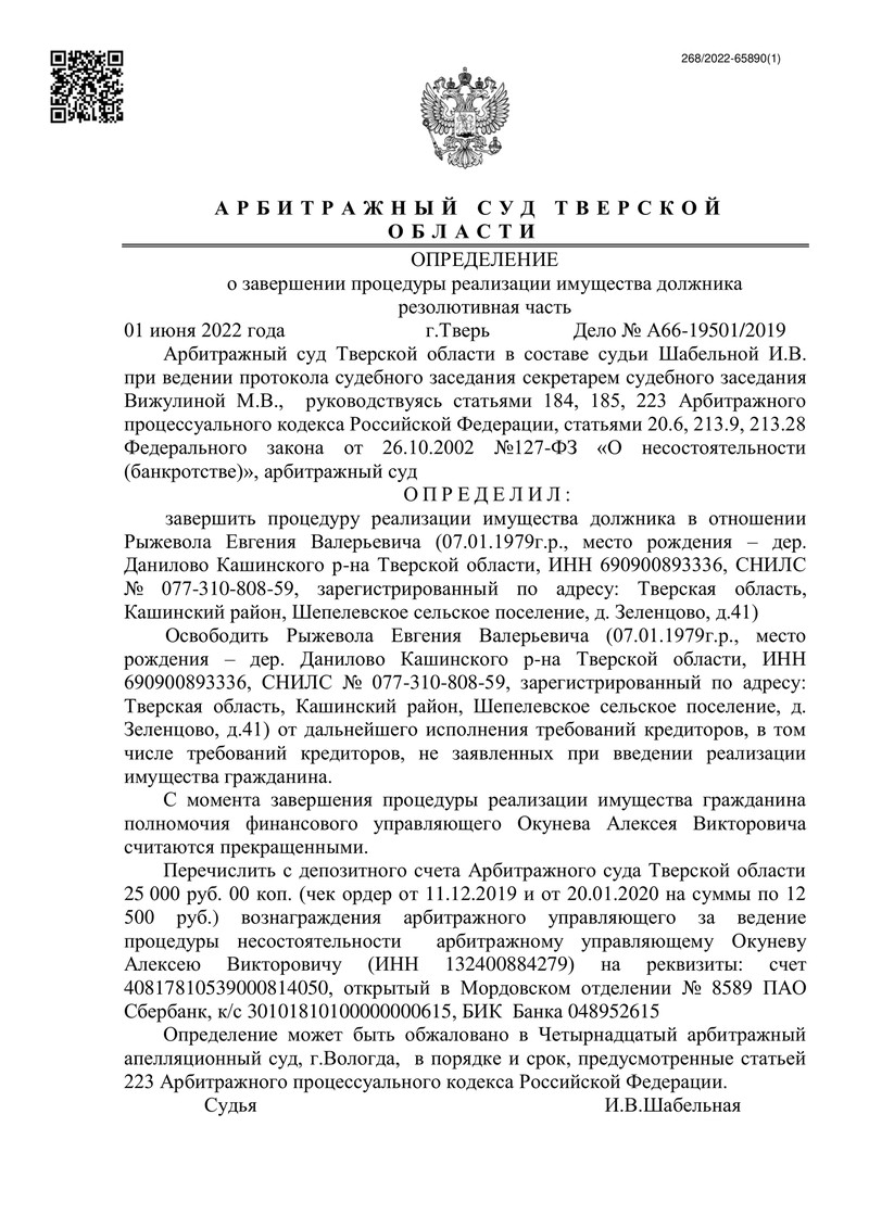 Арбитражный суд Тверской области завершил дело о банкротстве еще одного клиента компании "ДОЛГАМ.НЕТ". Это еще один пример успешного разрешения сложных финансовых проблем нашими специалистами.
