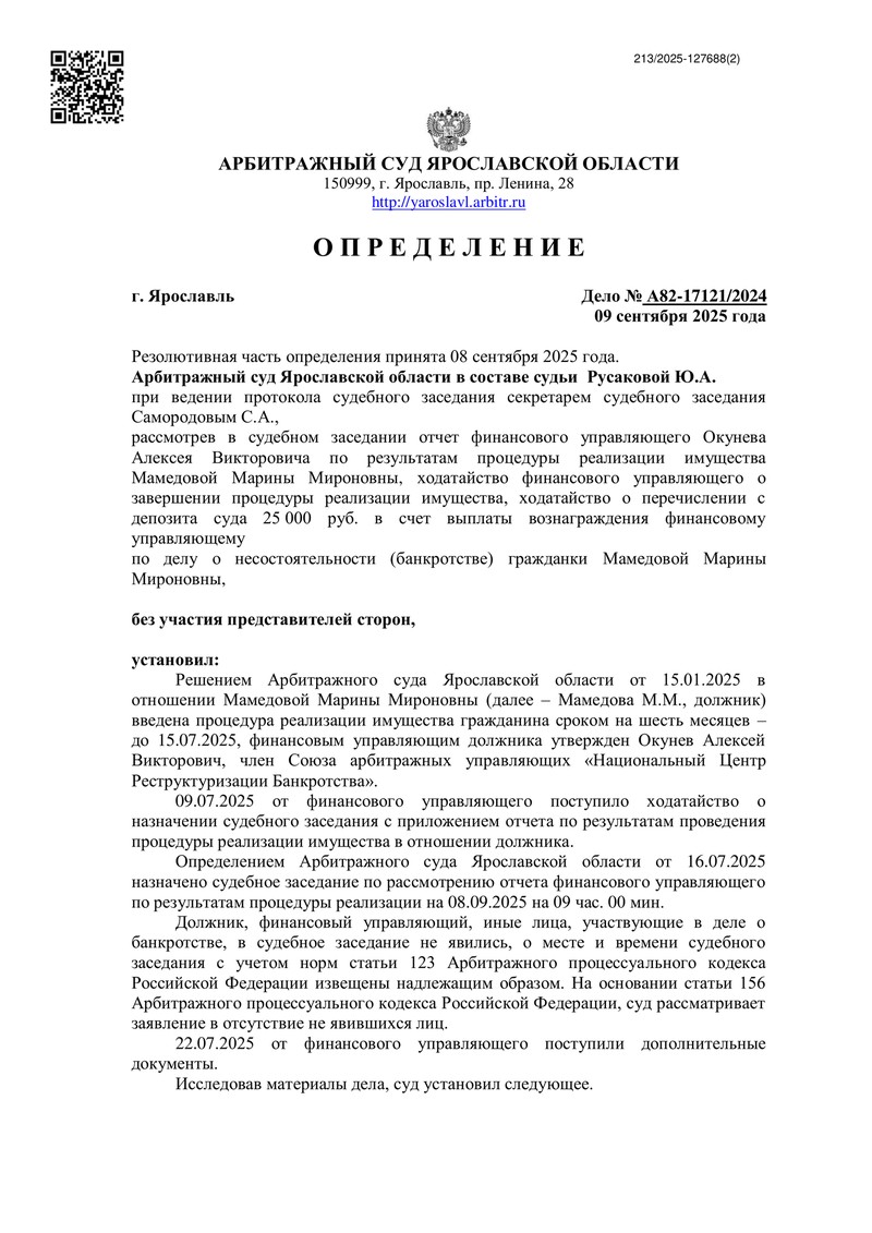 В очередной раз команда "ДОЛГАМ.НЕТ" подтвердила свою репутацию одного из лидеров в сфере банкротства физических лиц. На этот раз победа одержана в Арбитражном суде Ярославской области, где суд определил завершить процедуру реализации имущества по делу №А82-17121/2024 и полностью освободил нашего клиента от исполнения обязательств перед кредиторами.